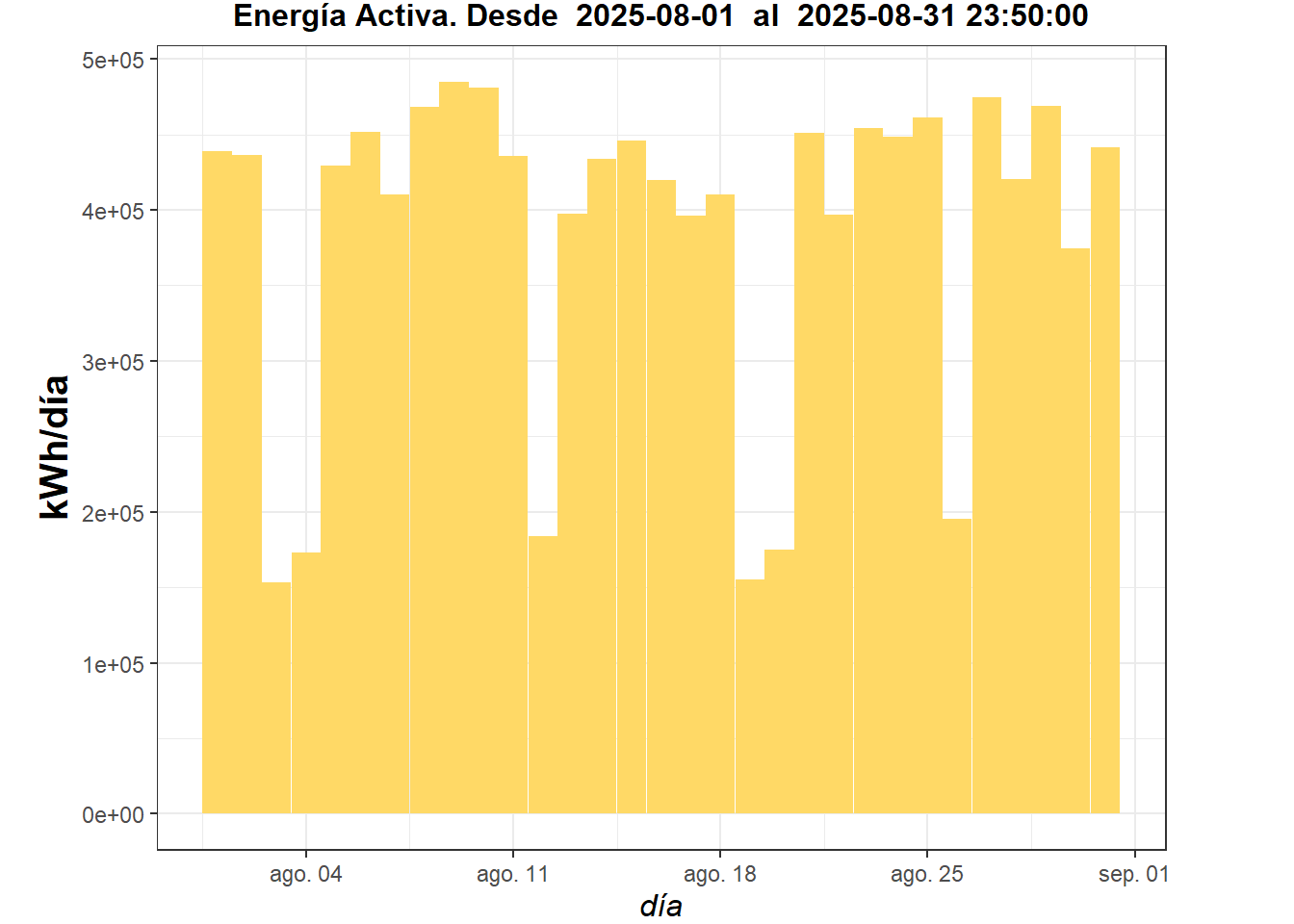 El consumo promedio diario de energía alcanzó los 385,952.67 kWh, en contraste con los 254,940.14 kWh registrados el mes pasado.
